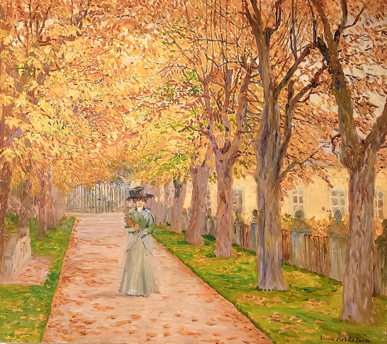Nedávno jsme při práci s muzejní sbírkou učinili překvapivý objev. Po delším zkoumání a odborném posouzení se ukázalo, že autorkou hned tří obrazů, které byly dlouho považovány za dílo neznámého umělce, je právě Anna Roškotová. Na jednom z nich je zachycena elegantní dáma procházející se francouzskou zahradou, zbývající dva pak zobrazují samotný dobříšský zámek. Návštěvníci tak mají jedinečnou příležitost vidět tato díla vystavená společně.