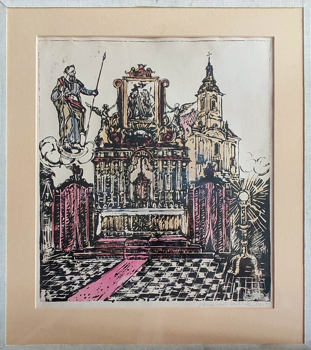 Jeho obraz „Kostelíček v Dobříši“ je datován rokem 1955, druhé vystavené dílo zobrazuje oltář kostela Nejsvětější Trojice v Dobříši, který je poněkud netradičně zachycen před kostelem samotným.