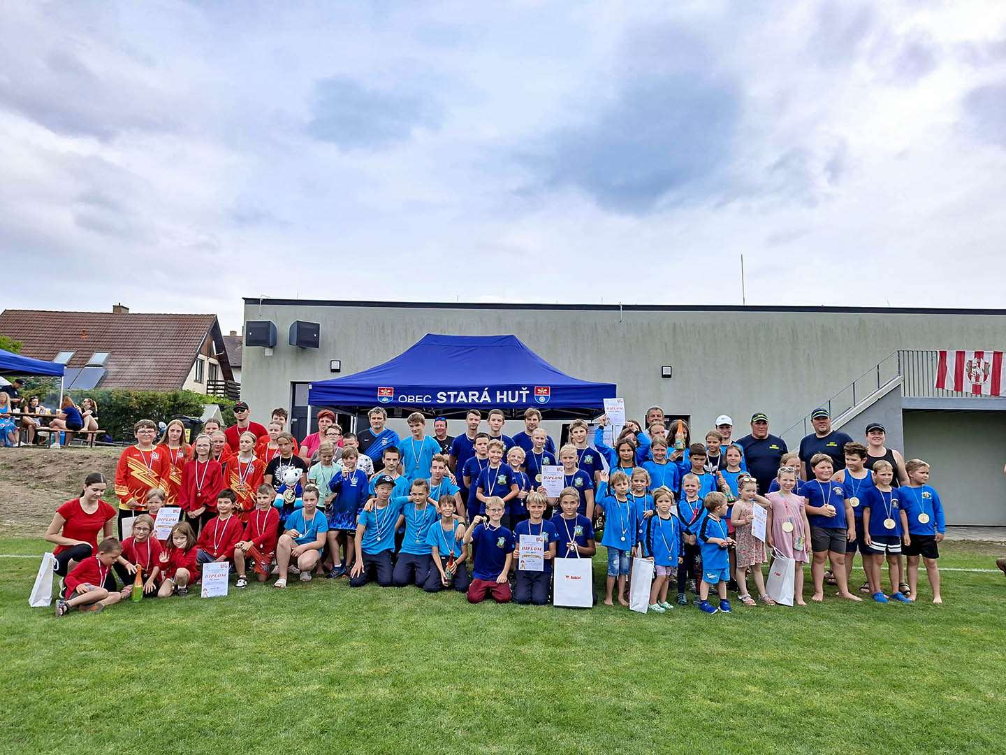 V den konání jsme od brzkého rána připravovali sportovní areál Na Rafandě. Na hřišti jsme rozmístili nástřikové terče, časomíru, základny a kádě s vodou. Připraven byl také stánek s občerstvením, kryté posezení pro hosty a samozřejmě oblíbené skákací atrakce pro děti.