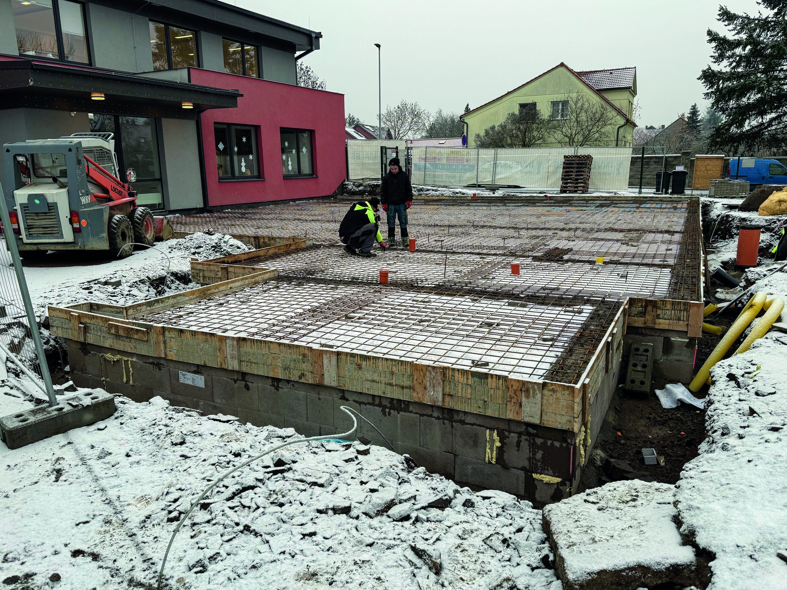V rámci budování základů bylo nutné přeložit sítě – vodovodní a kanalizační přípojku. Ale především kanalizační přípojka lapol (odlučovač tuků z jídelny) byla velkou výzvou. Pokud půjde vše podle plánu, bude v době, kdy budete číst toto vydání, provedena betonáž základové desky.