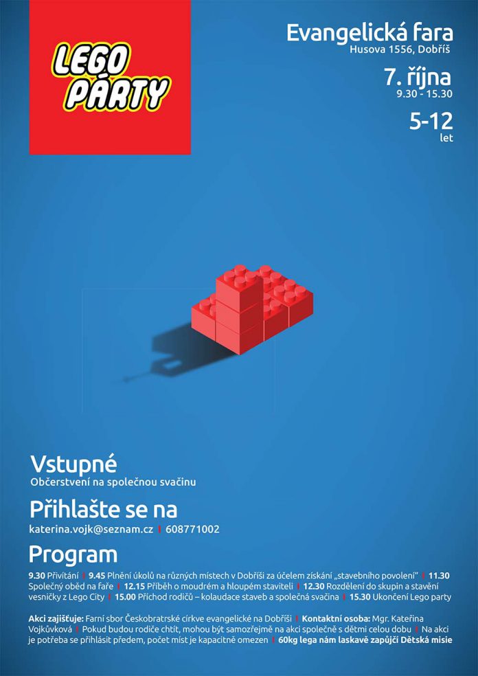 Všichni jste srdečně zváni v sobotu 7. října od 9.30 do 15.30 hodin na Lego párty do evangelické fary v Dobříši. Určeno pro děti od 5 do 12 let.
