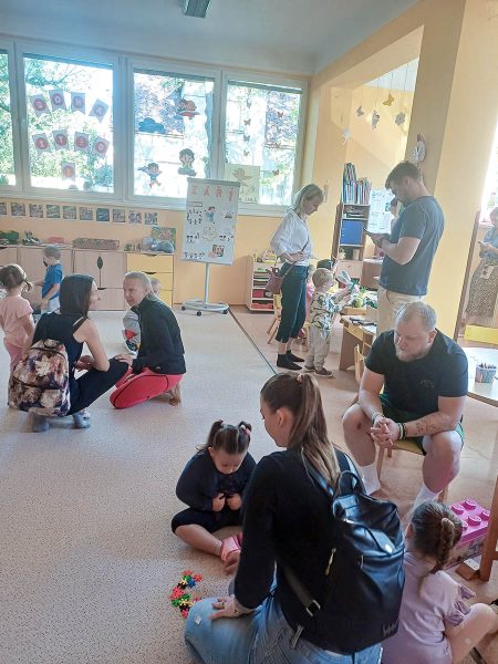 Na začátku září k nám zavítaly nové děti, zatímco některé z těch „našich“ postoupily do třídy předškoláků. První den probíhal v radostné a přátelské atmosféře. Už u vchodu vítala děti i rodiče veselá hudba z pohádek a dětských filmů, paní učitelky byly slavnostně naladěné a s úsměvem otevíraly dveře do tříd. Rodiče měli možnost zůstat se svými dětmi, pomoci jim první chvíle zvládnout a společně si vybarvili obrázek na památku.