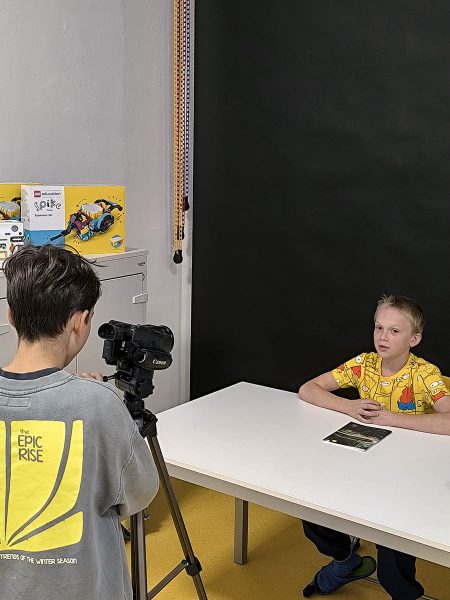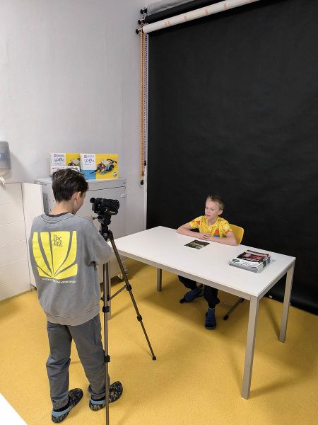 Nová multimediální učebna je rozdělena do zón. Tady se natáčí podcast, tam se stříhá video, vedle se programuje. „Nechceme, aby děti jen konzumovaly technologie. Chceme, aby je využívaly kreativně,“ vysvětluje koordinátorka ICT Monika Cieślik.