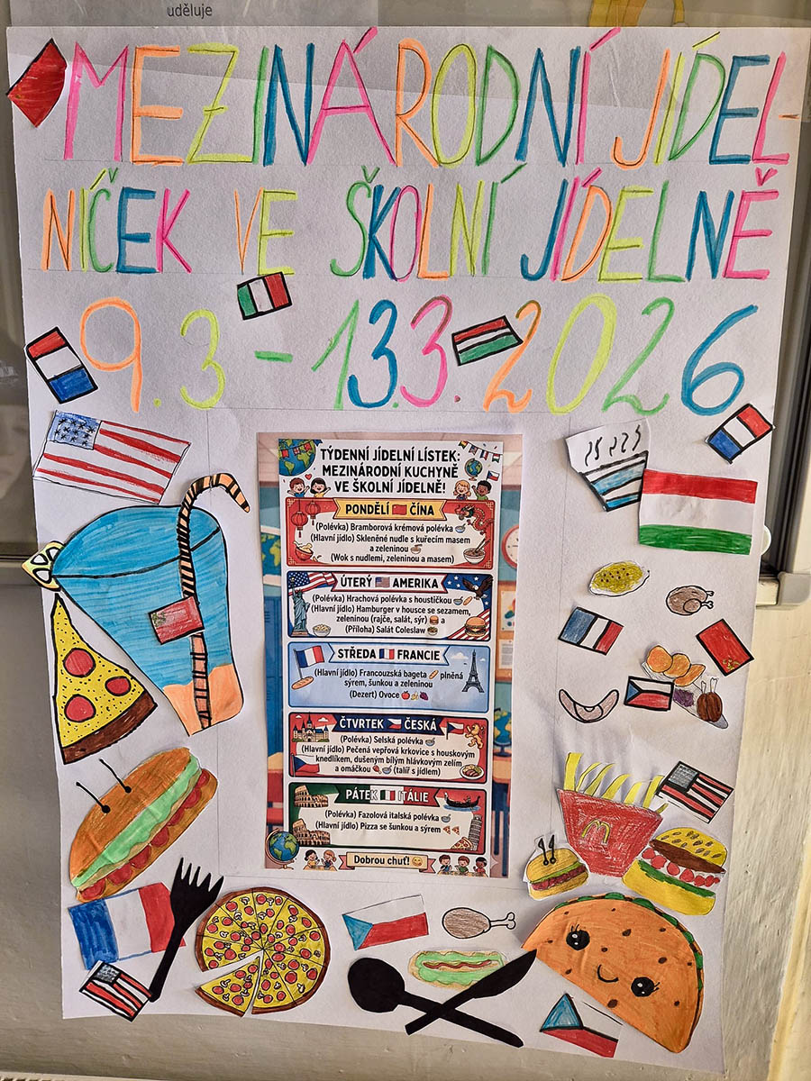 Zajímavou akci pro naši školu připravuje také školní parlament, který chystá pro děti ve školní jídelně mezinárodní jídelníček. Postupně tak budou moci ochutnat typická jídla z různých zemí a poznat chutě světa.