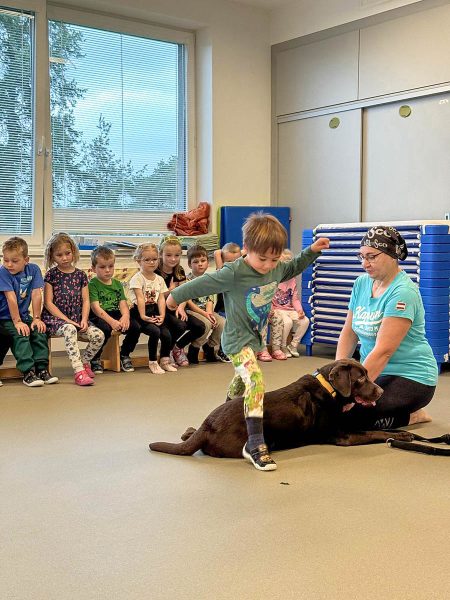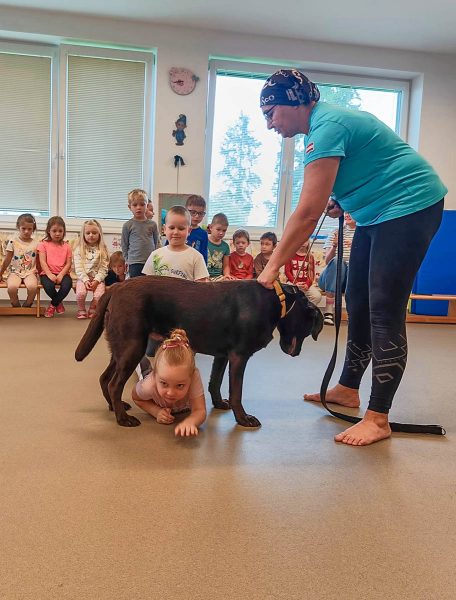 Hned v úvodu měsíce nás čekal nezapomenutelný zážitek – do školky zavítala paní s interaktivním programem „Canisterapeutický pes“. Spolu s ní přišel i čtyřnohý psí kamarád, který děti okamžitě zaujal. Program byl zaměřený na seznámení s tím, jak mohou speciálně vycvičení psi pomáhat lidem – například nemocným, seniorům nebo právě dětem. Děti se dozvěděly, co takový canisterapeut dělá, jak se o něj správně starat, i jak se chovat ke zvířatům s respektem. Nechyběly ani praktické ukázky, společné hry a samozřejmě chvíle, kdy si děti mohly pejska pohladit a odměnit ho pamlskem. Všichni odcházeli s úsměvem na tváři a s novými poznatky o tom, že i zvířata mohou mít důležitou roli v pomáhání lidem.