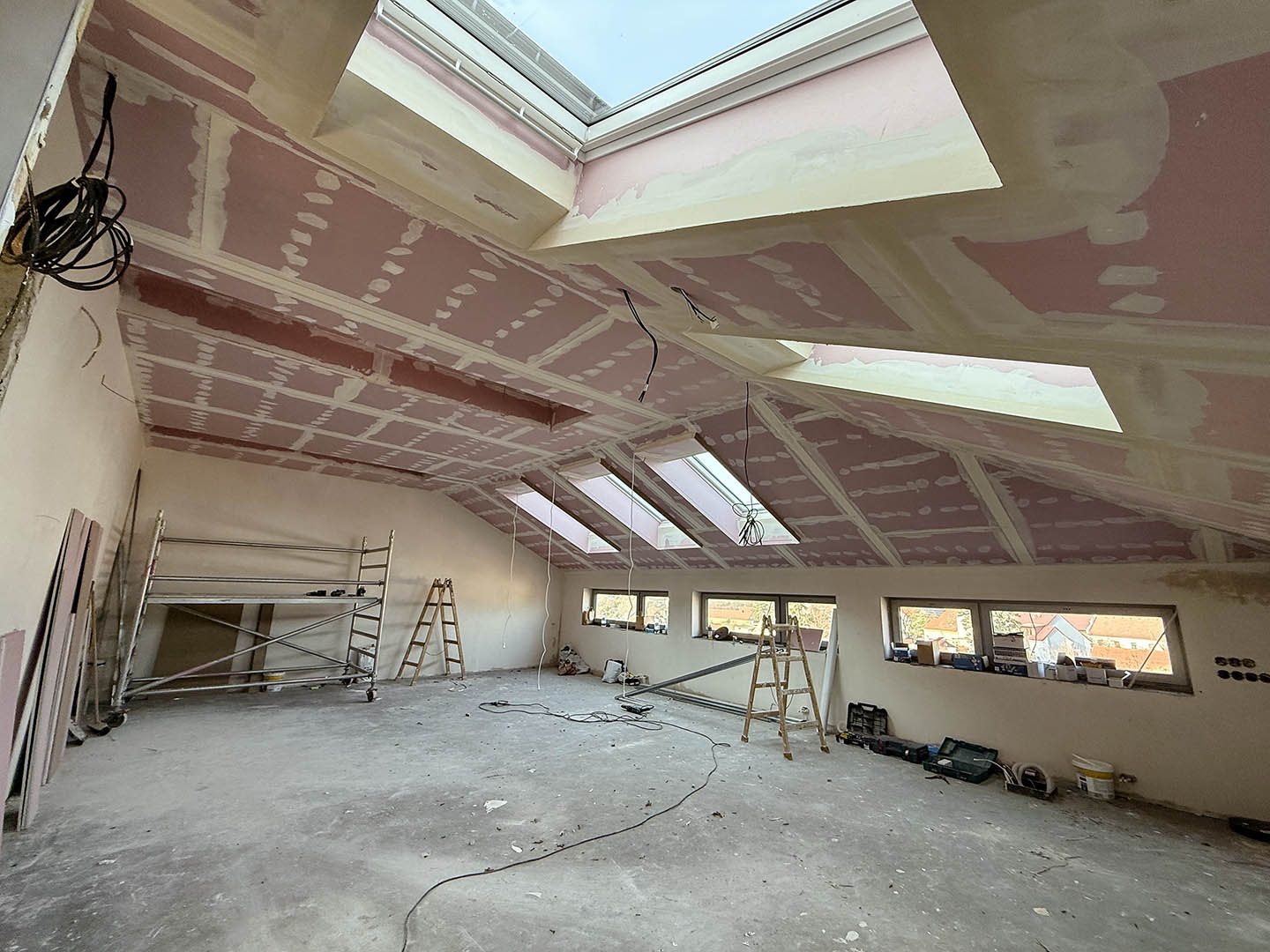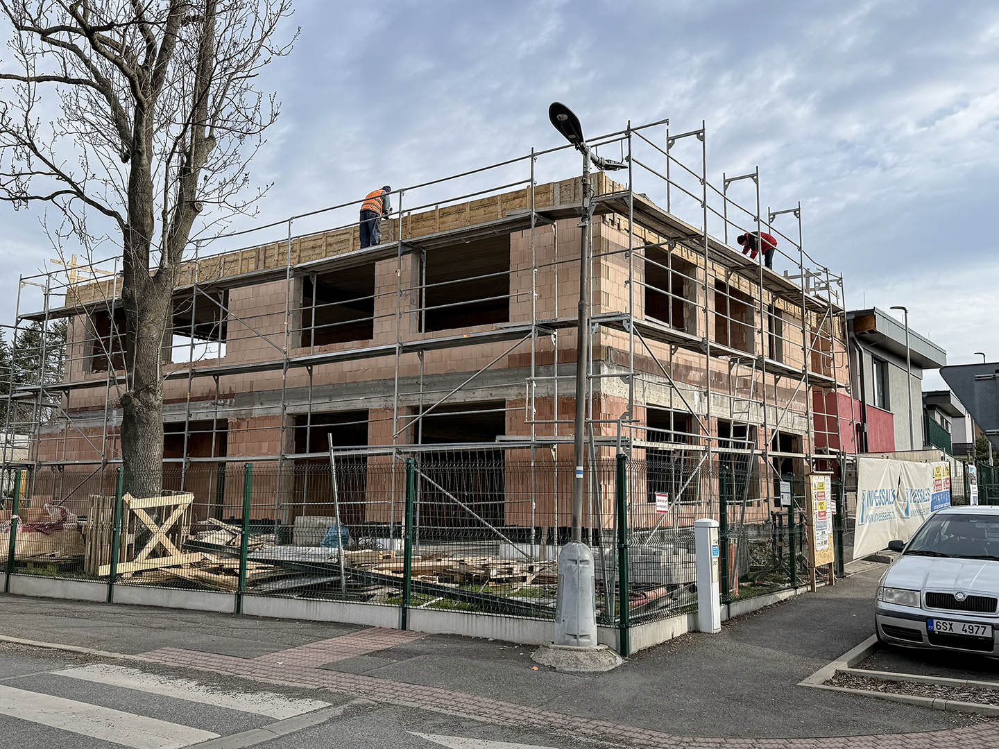 Na stavbě aktuálně probíhají práce v interiéru, konkrétně montáž sádrokartonových konstrukcí ve 3. nadzemním podlaží. Zahájeny byly také práce na fasádě. Současně se realizují svody dešťové kanalizace jak na přístavbě, tak na původní budově, kde dosud chyběly.