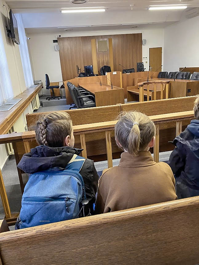Žáci 5. třídy ZŠ TRNKA ano. Měli možnost zúčastnit se programu, který pro ně připravili pracovníci Okresního soudu v Příbrami. Vyzkoušeli si projít bezpečnostními rámy, prohlédli si cely či prostory archivu. Poté se stali diváky simulovaného soudního líčení. V něm se řešilo velmi aktuální téma kyberšikany. Děti tak mohly sledovat, jak to vypadá, když nějaký trestný čin spáchá nezletilý, či co může nastat, když obžalovaný nedodržuje klid v soudní síni. Po skončení tohoto zinscenovaného líčení děti dostaly prostor k otázkám na paní soudkyni. Z celého programu byli žáci nadšení, což pak vyjádřili i ve svých zpětných vazbách. V nich zaznělo například: Pro mě to byl opravdu velký zážitek. Chtěla bych ocenit, jak si program pro nás krásně připravili. Všichni byli moc milí, všechno nám důkladně vysvětlovali a provedli nás celou budovou. Udivilo mě, že mají jiné vězení, než jsem si představovala, a také to, že tam mají půl miliónu svazků ve spisovně. Bavilo mě sledovat ten soud, krásně a napínavě vše zahráli. Chtěla bych poděkovat za to, že jsme vše mohli vidět a že jste byli fakt milí.